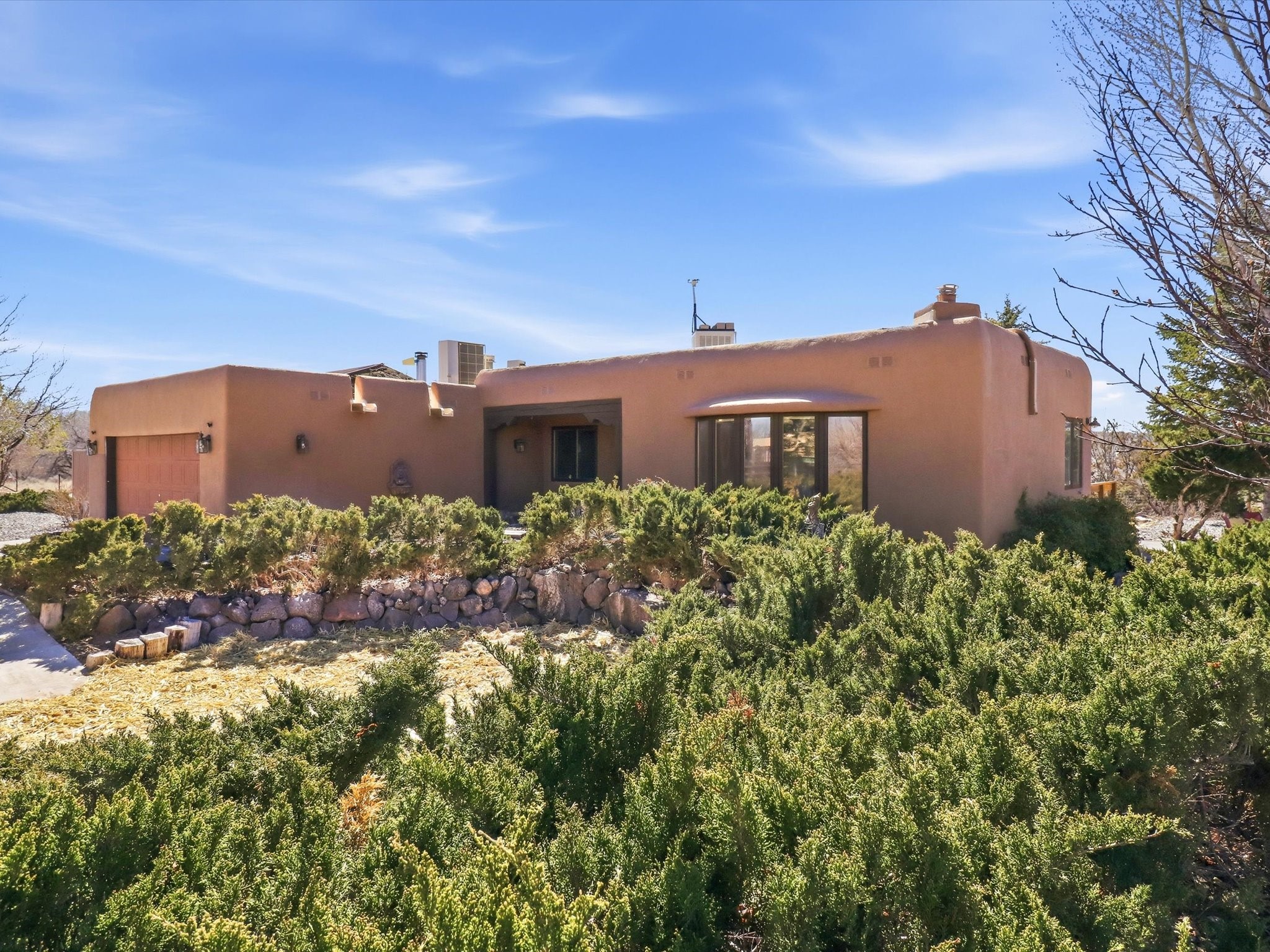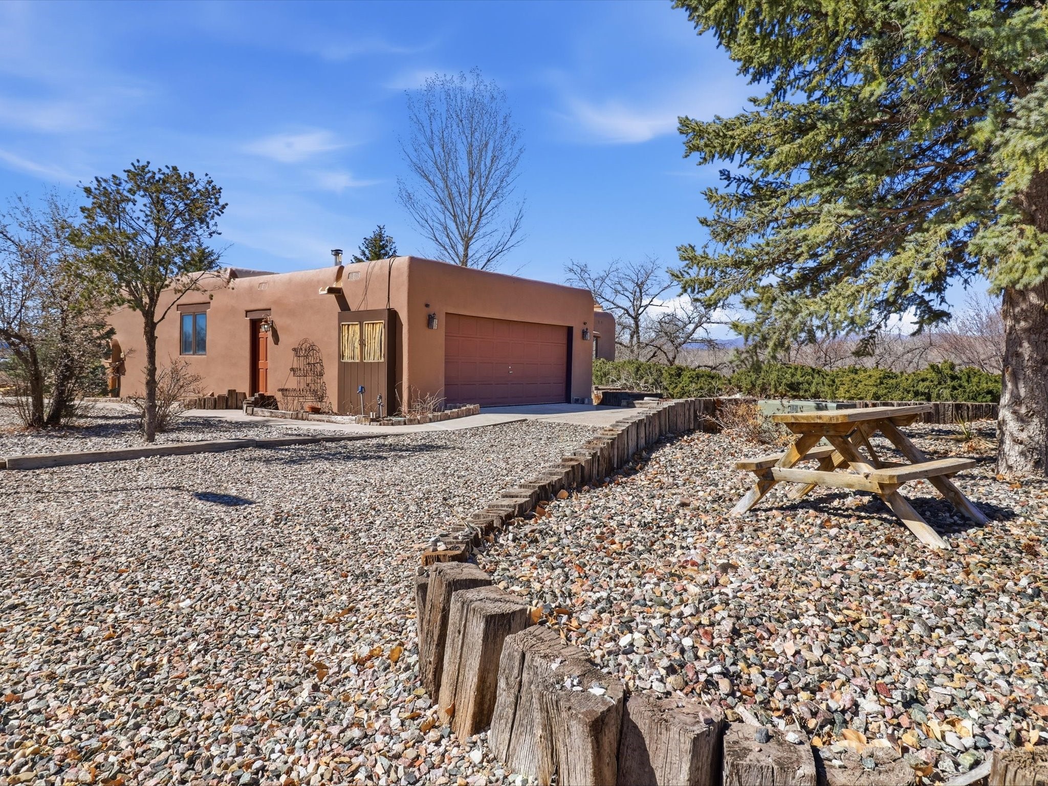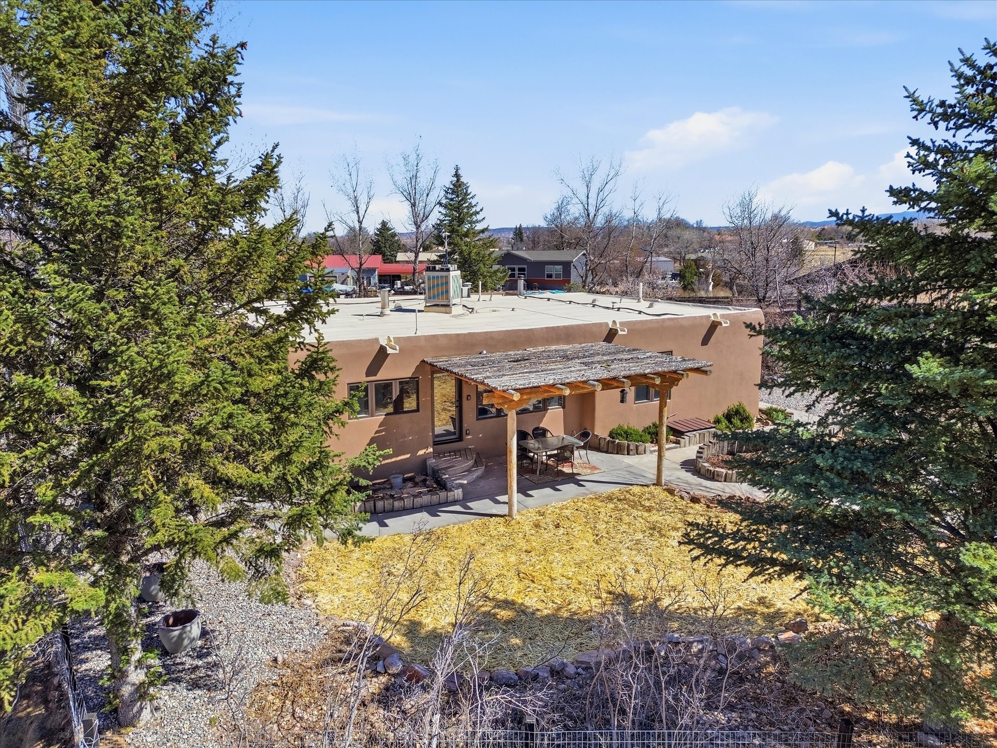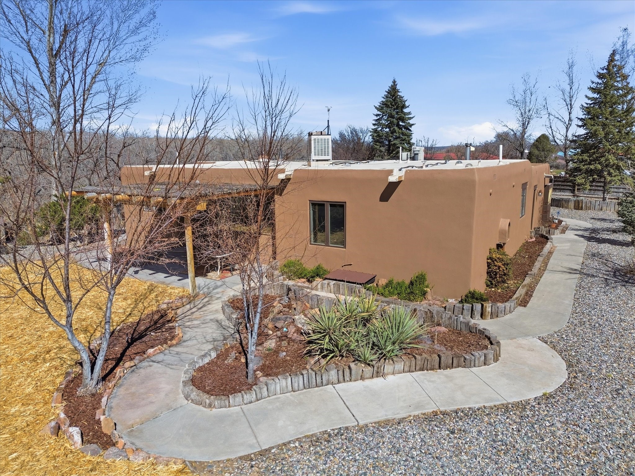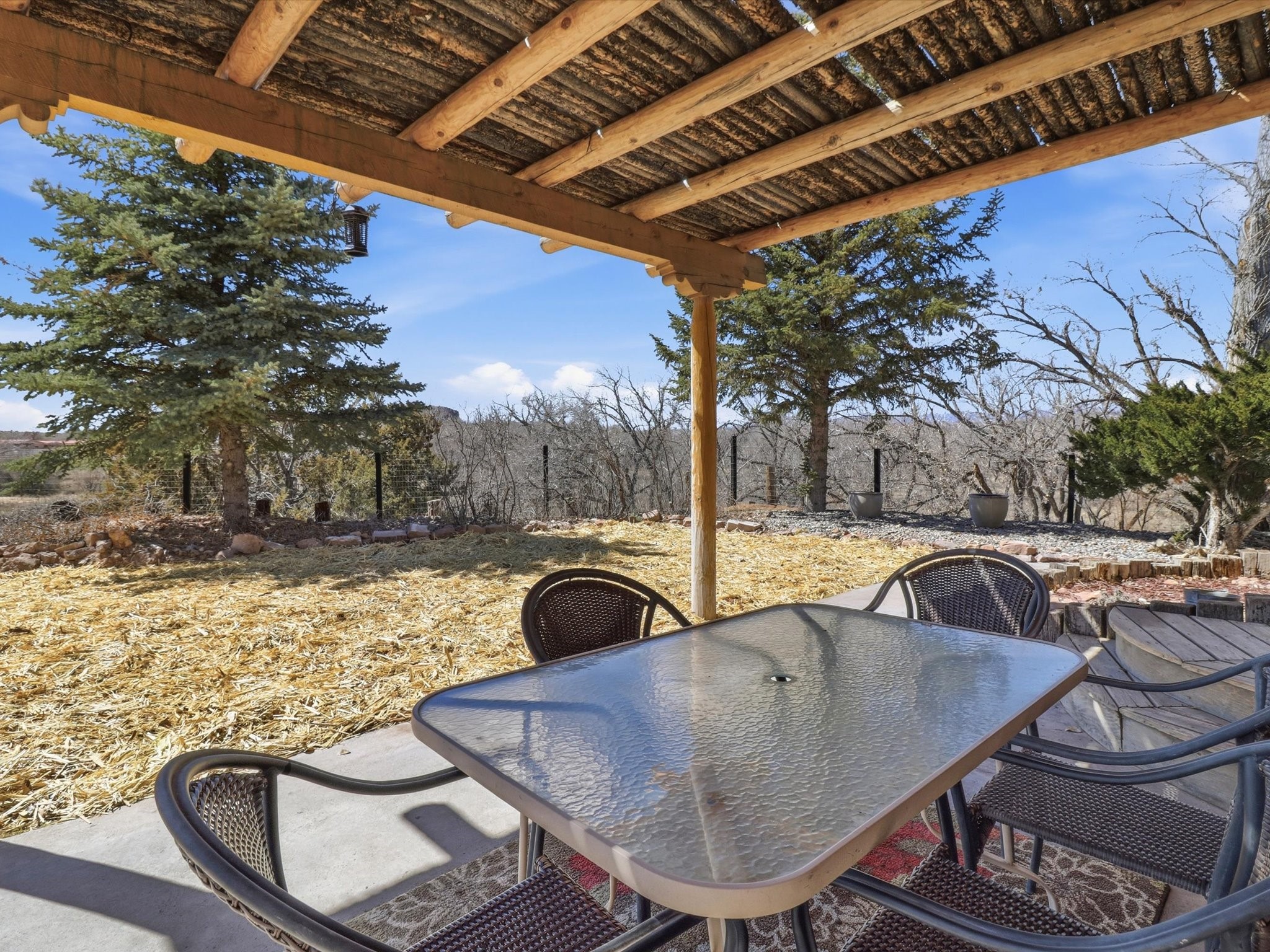 La Mesilla Retreat with Black Mesa Views! Maintained and thoughtfully updated, this peaceful La Mesilla retreat offers space, privacy, and stunning views of Black Mesa while backing directly to Pueblo land. Set on horse-friendly property, this home combines rural charm with convenient access to Los Alamos, Espaola, and Santa Fe. Inside, the home features 3 bedrooms and 2 updated bathrooms, along with newer laminate flooring throughout much of the living space. Two comfortable living areas showcase beautiful tongue-and-groove ceilings with exposed beams, creating warmth and character. There is a kiva fireplace in the main area and a Blaze King wood burning stove in the den. The primary bedroom continues the rustic charm with its own wood ceiling and beams. Major updates include a new TPO roof installed Winter of 2025 with a transferable warranty, new septic tank installed in the Fall of 2025, and Mitsubishi mini-split systems that provide efficient heating and cooling year-round. The outdoor space is ideal for those seeking room to spread out. Horse facilities include a stall with water and electricity, a chicken coop, and open space perfect for animals or gardening. Mature landscaping enhances the setting, while the property's position backing to Pueblo land provides privacy and uninterrupted views. For storage and functionality, the property includes two large 40' storage containers that bookend a 40' x 40' carport, plus an additional carport for extra vehicles or equipment. If you're looking for space, views, and a quiet setting with convenient access to Northern New Mexico's major communities, this La Mesilla property offers a unique opportunity to enjoy country living without sacrificing accessibility.