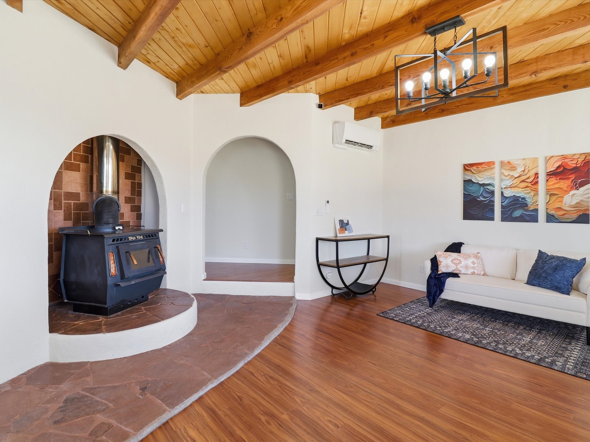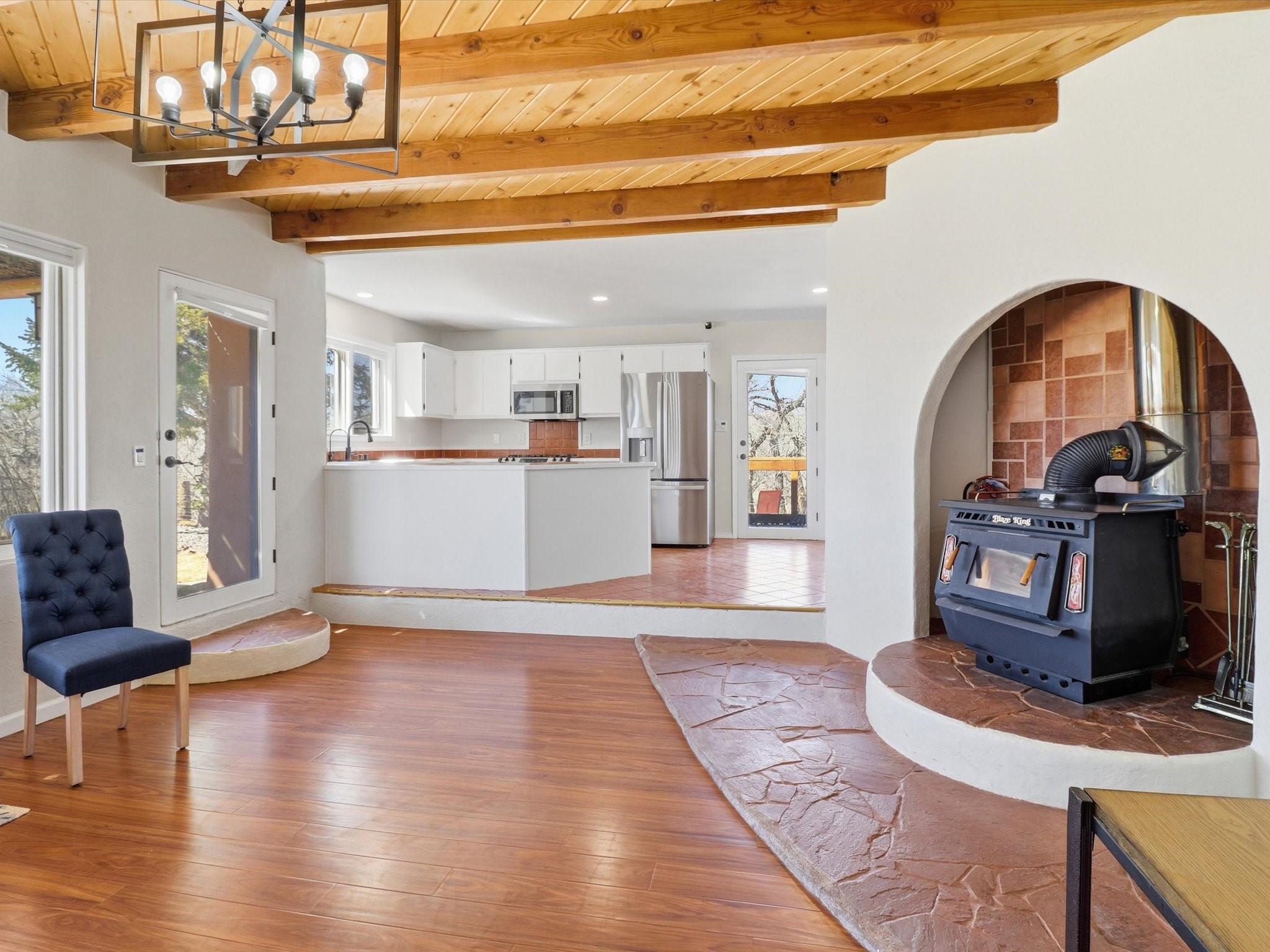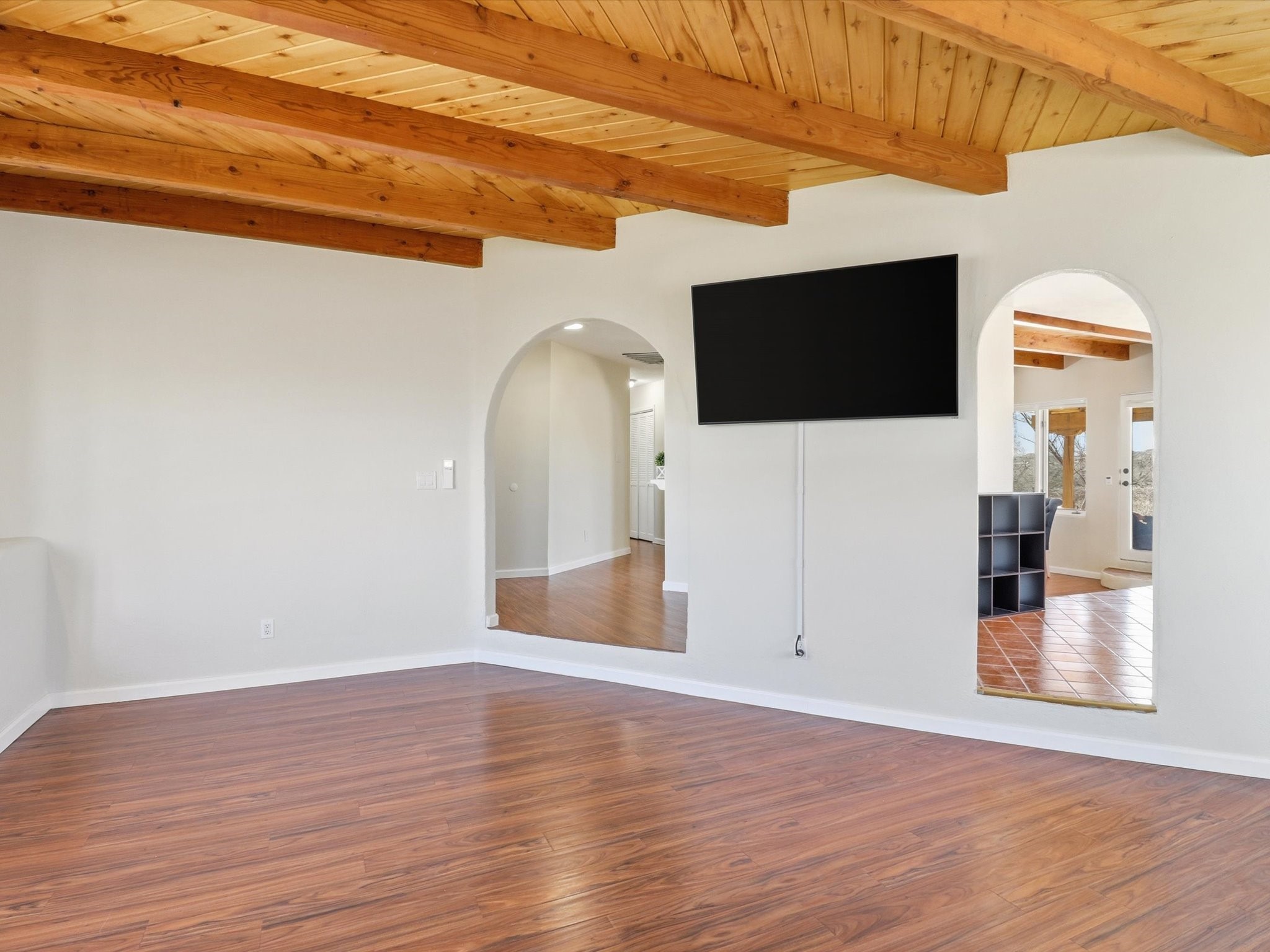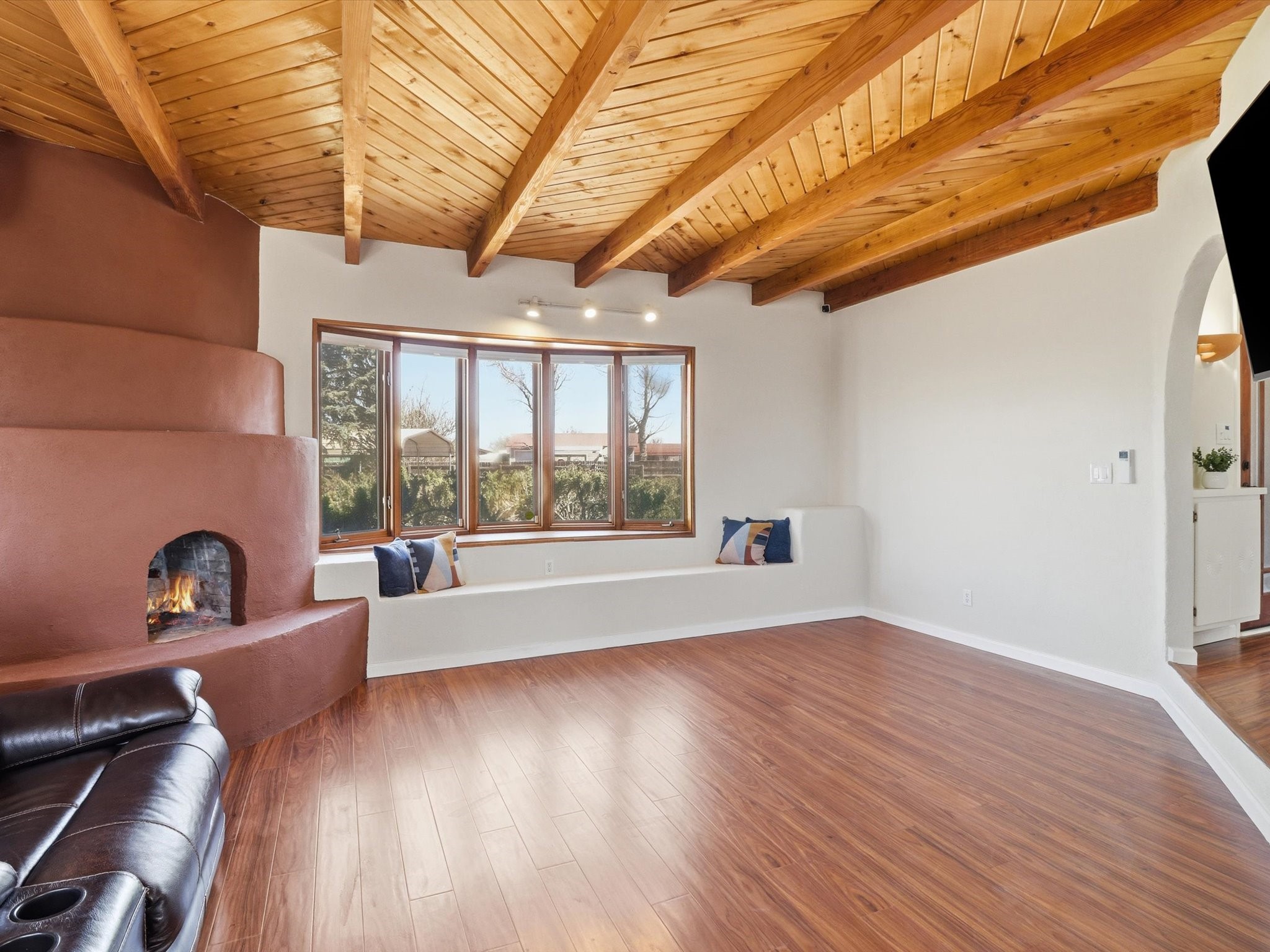 La Mesilla Retreat with Black Mesa Views! Maintained and thoughtfully updated, this peaceful La Mesilla retreat offers space, privacy, and stunning views of Black Mesa while backing directly to Pueblo land. Set on horse-friendly property, this home combines rural charm with convenient access to Los Alamos, Espaola, and Santa Fe. Inside, the home features 3 bedrooms and 2 updated bathrooms, along with newer laminate flooring throughout much of the living space. Two comfortable living areas showcase beautiful tongue-and-groove ceilings with exposed beams, creating warmth and character. There is a kiva fireplace in the main area and a Blaze King wood burning stove in the den. The primary bedroom continues the rustic charm with its own wood ceiling and beams. Major updates include a new TPO roof installed Winter of 2025 with a transferable warranty, new septic tank installed in the Fall of 2025, and Mitsubishi mini-split systems that provide efficient heating and cooling year-round. The outdoor space is ideal for those seeking room to spread out. Horse facilities include a stall with water and electricity, a chicken coop, and open space perfect for animals or gardening. Mature landscaping enhances the setting, while the property's position backing to Pueblo land provides privacy and uninterrupted views. For storage and functionality, the property includes two large 40' storage containers that bookend a 40' x 40' carport, plus an additional carport for extra vehicles or equipment. If you're looking for space, views, and a quiet setting with convenient access to Northern New Mexico's major communities, this La Mesilla property offers a unique opportunity to enjoy country living without sacrificing accessibility.