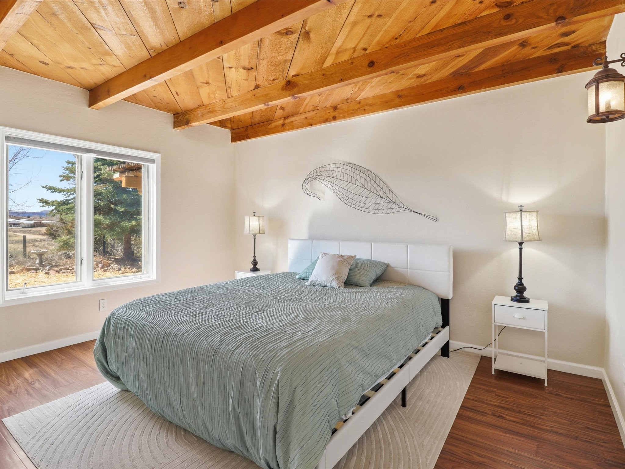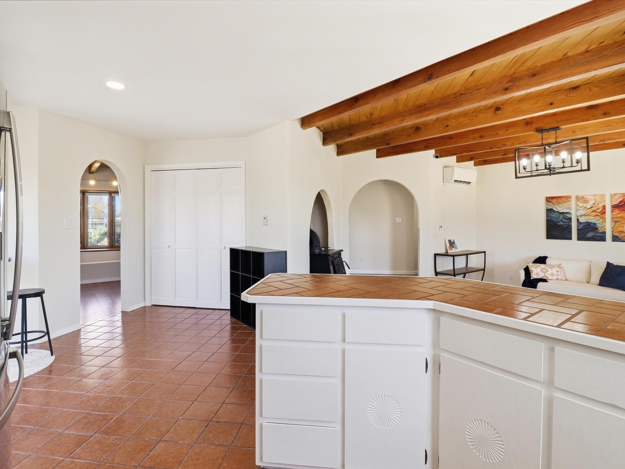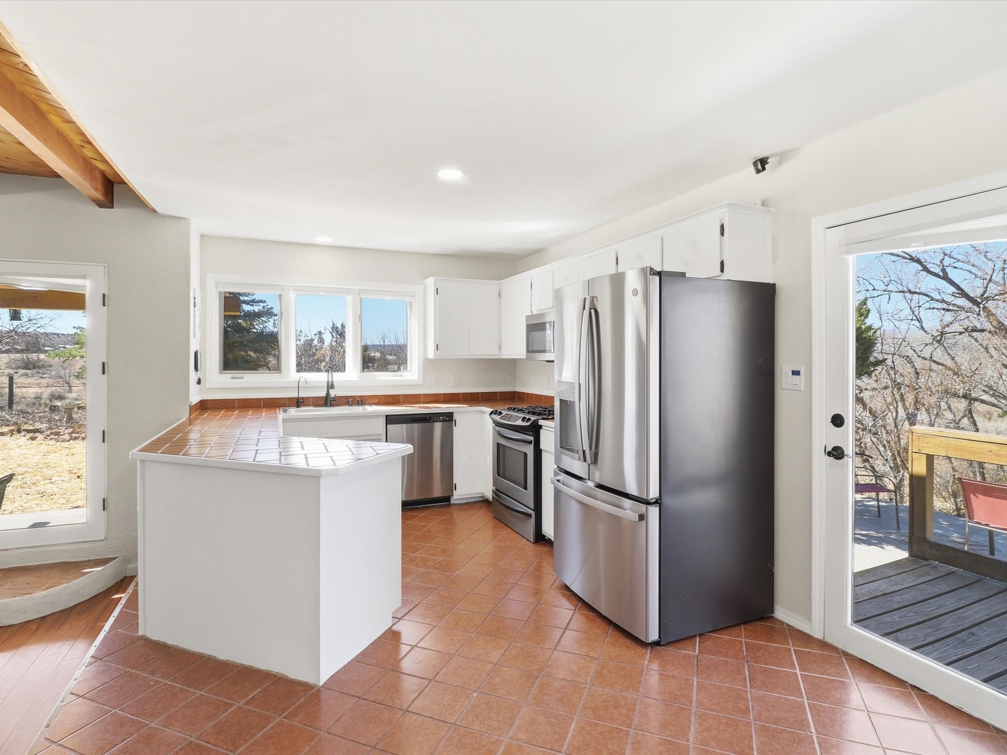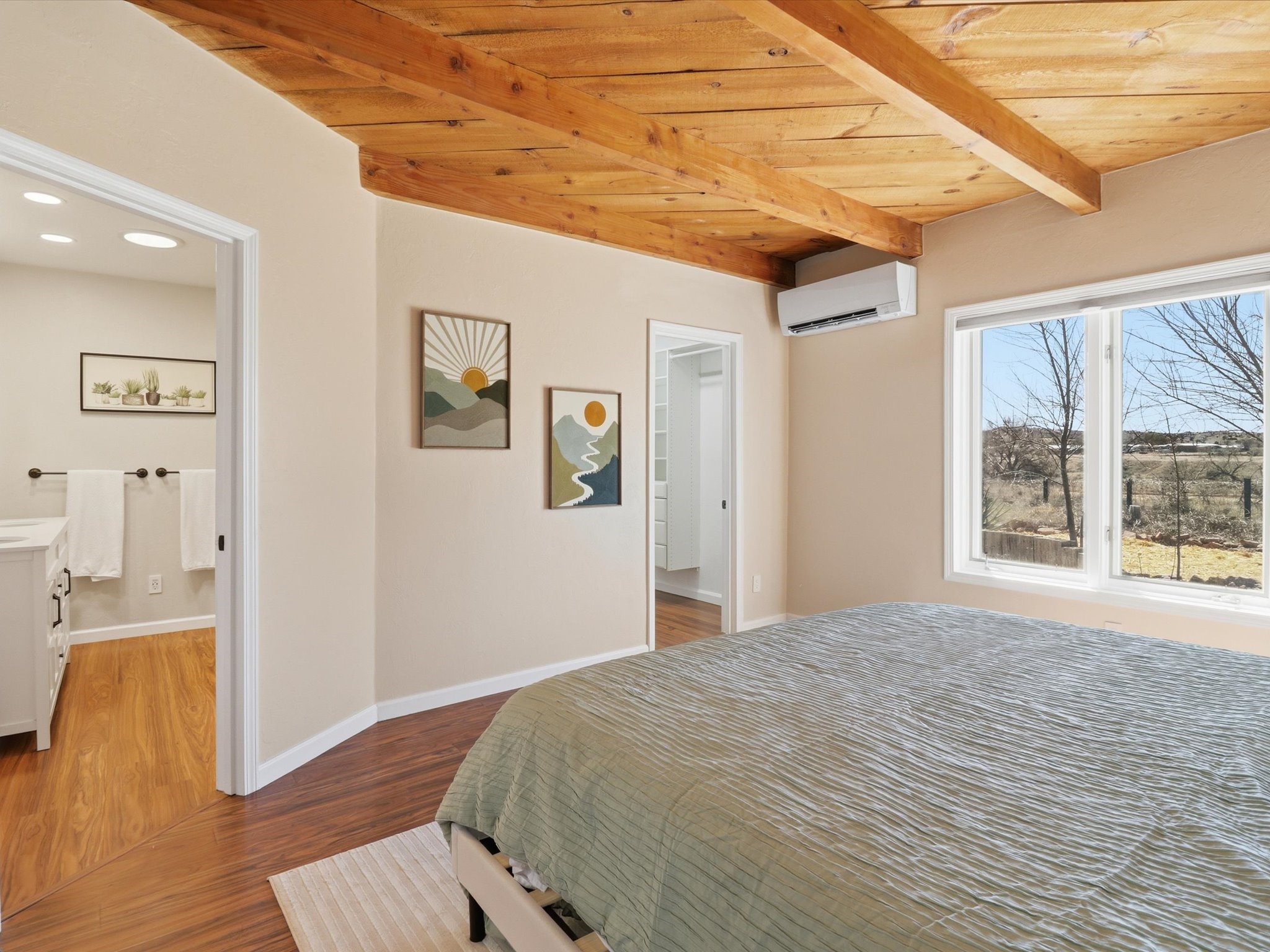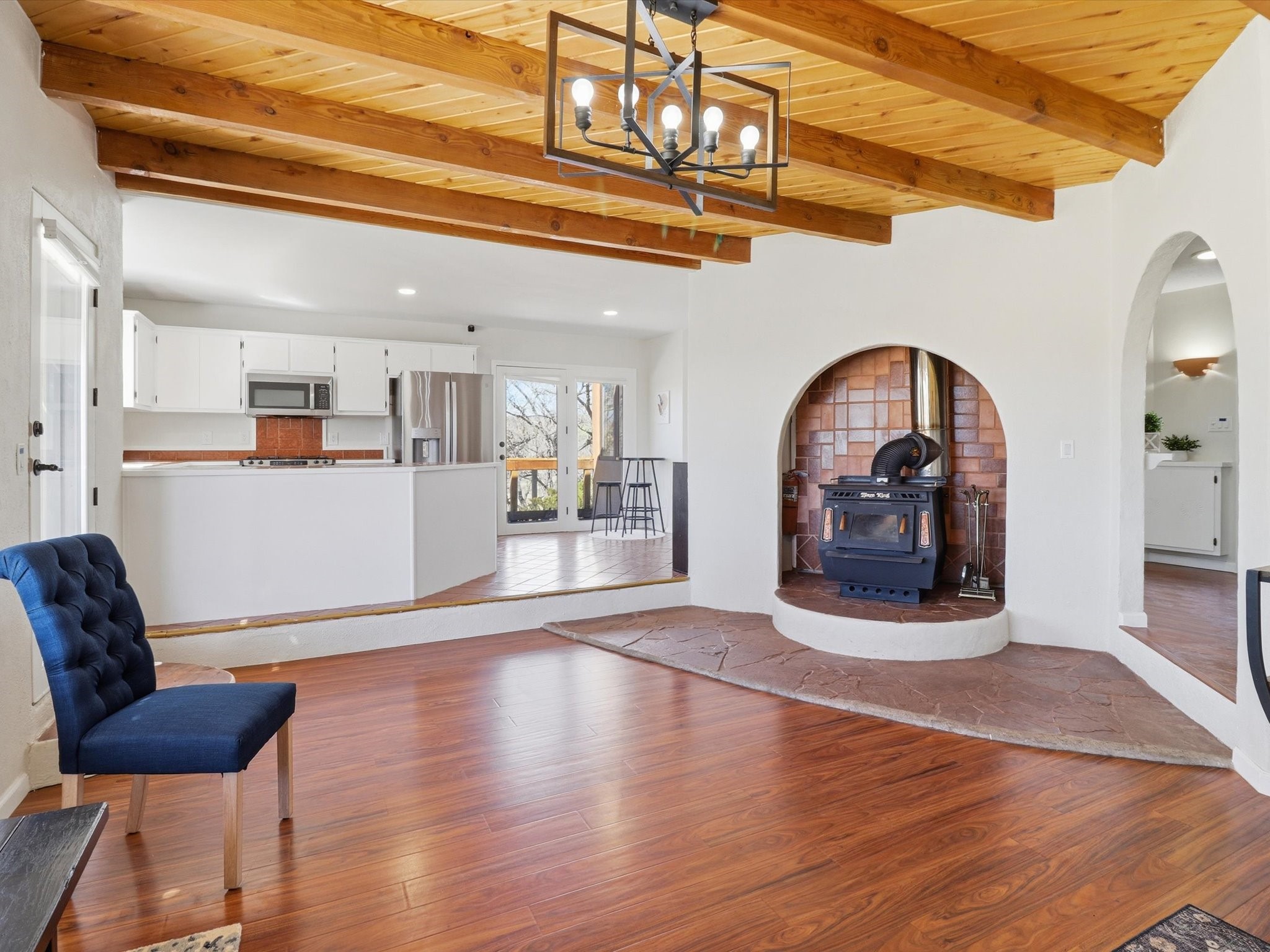 La Mesilla Retreat with Black Mesa Views! Maintained and thoughtfully updated, this peaceful La Mesilla retreat offers space, privacy, and stunning views of Black Mesa while backing directly to Pueblo land. Set on horse-friendly property, this home combines rural charm with convenient access to Los Alamos, Espaola, and Santa Fe. Inside, the home features 3 bedrooms and 2 updated bathrooms, along with newer laminate flooring throughout much of the living space. Two comfortable living areas showcase beautiful tongue-and-groove ceilings with exposed beams, creating warmth and character. There is a kiva fireplace in the main area and a Blaze King wood burning stove in the den. The primary bedroom continues the rustic charm with its own wood ceiling and beams. Major updates include a new TPO roof installed Winter of 2025 with a transferable warranty, new septic tank installed in the Fall of 2025, and Mitsubishi mini-split systems that provide efficient heating and cooling year-round. The outdoor space is ideal for those seeking room to spread out. Horse facilities include a stall with water and electricity, a chicken coop, and open space perfect for animals or gardening. Mature landscaping enhances the setting, while the property's position backing to Pueblo land provides privacy and uninterrupted views. For storage and functionality, the property includes two large 40' storage containers that bookend a 40' x 40' carport, plus an additional carport for extra vehicles or equipment. If you're looking for space, views, and a quiet setting with convenient access to Northern New Mexico's major communities, this La Mesilla property offers a unique opportunity to enjoy country living without sacrificing accessibility.
