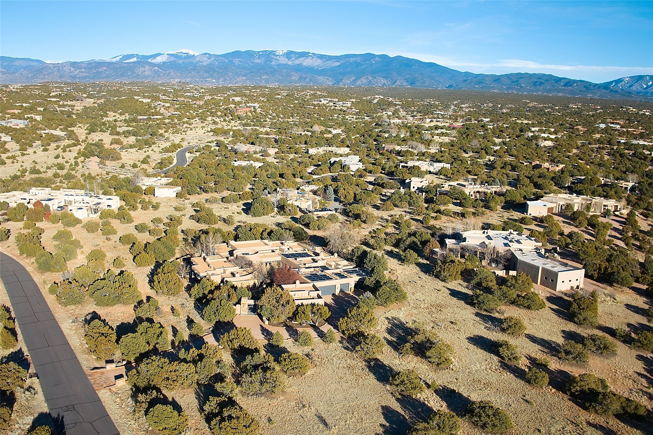 A rare opportunity to own a luxury Santa Fe estate in Las Campanas, one of the city's premier gated golf communities. Located just minutes from the historic Santa Fe Plaza, 26 Estates Drive is an impressive 8,356 square foot adobe residence with a detached guest casita, blending classic Northern New Mexico architecture with thoughtful modern upgrades.The home showcases the craftsmanship Santa Fe is known for, including handcrafted vigas, smooth plaster walls, wood-beamed ceilings, and striking moss rock accents. Large windows and generous gathering spaces create a home that is equally suited for everyday living or entertaining. At the center of the residence is a well-appointed kitchen featuring a 2024 Viking range, steam oven, quartzite countertops, custom cabinetry, and temperature-controlled wine storage for 288 bottles. The property offers four bedrooms and six bathrooms, including a spacious primary suite with fireplace and a spa-inspired bath. Outdoor living is an essential part of the experience. A wrap-around portal provides multiple seating areas, while the grounds feature native landscaping, stone walkways, an outdoor kitchen and dining area, and a built-in heated spa designed for eight. The setting is ideal for enjoying Santa Fe's sunshine, mountain air, and evening skies. Recent improvements include radiant heating and cooling, solar panels, a foam roof installed by Southwest Spray Foam in 2022, and freshly completed stucco in 2024. Homes of this size and quality in Las Campanas rarely come available. For buyers searching for a luxury home in Santa Fe with access to golf, privacy, and the lifestyle that defines Northern New Mexico, 26 Estates Drive represents a compelling opportunity.