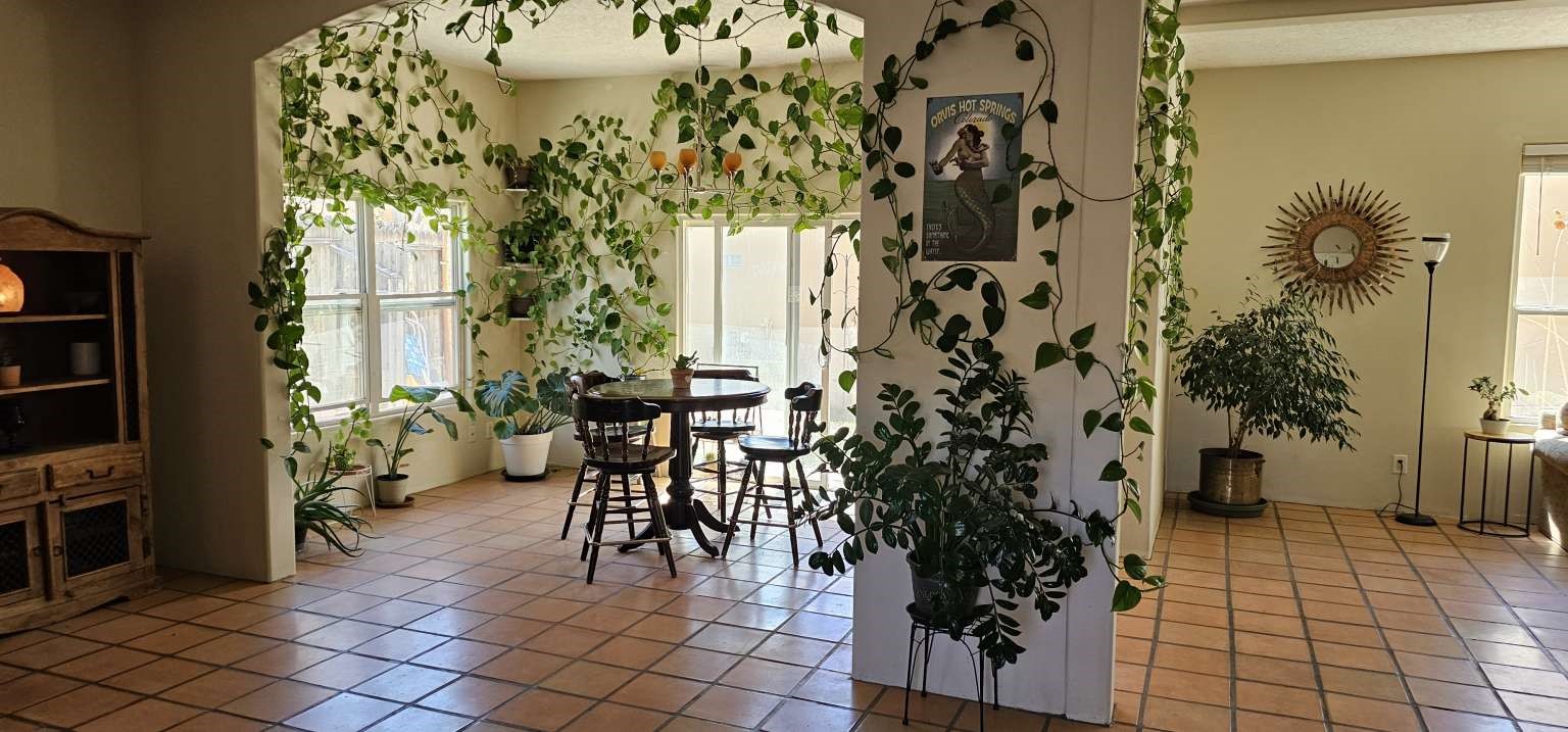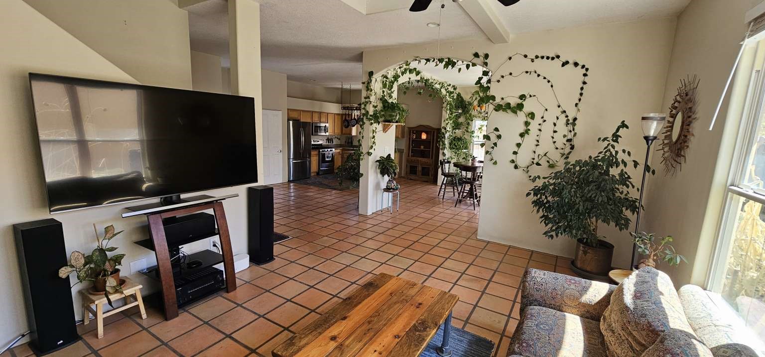 Light-filled residence with panoramic mountain views from nearly every window, including a flat rooftop and private primary suite balcony. South-facing orientation provides abundant natural light, complemented by radiant floor heating throughout.Open-concept main level features Sausalito tile flooring and a dramatic two-story living room with upper-level view windows. Functional layout includes a convenient main-level half bath.Upstairs offers 4 bedrooms and 2 full bathrooms, including a spacious primary suite with walk-in closet and soaking tub positioned by a view window.Outdoor features include a courtyard-style entry with coyote fence and flagstone patio, front and back lawns, irrigated garden beds, and a 2-car garage with additional off-street parking.No HOA. Full city utilities (water, sewer, gas, electric, trash). Convenient location near parks, trails/open space, library, golf, schools, and airport access.