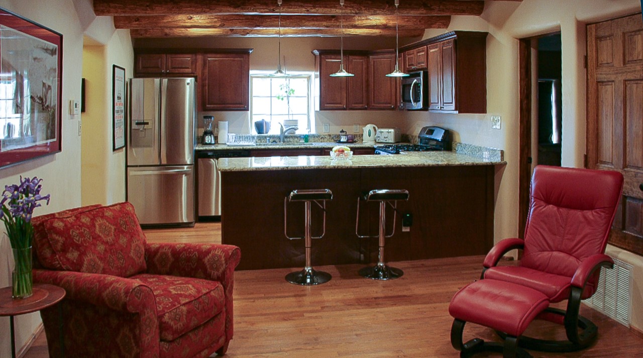 The Northeast of Santa Fe, within city limits, combines the pleasures of quiet living with the conveniences of location. On every tree-lined street are examples of newer, award-winning architecture and well-established, older adobes. In addition to the famous Plaza, this area includes all the land reaching up to the Jemez and the Sandias. Newer developments appear on your left and right as you climb in altitude into the tree-studded Sangre de Christos. Historically this area was for many years the center of life in Santa Fe. On one side of the Plaza stretches the Palace of the Governors. Constructed in the early 17th century as Spain’s seat of government, the Palace of the Governors in Santa Fe chronicles and documents the history of the city, as well as New Mexico and the region. Stroll down East Palace Avenue past galleries, shops and lovely hotels.