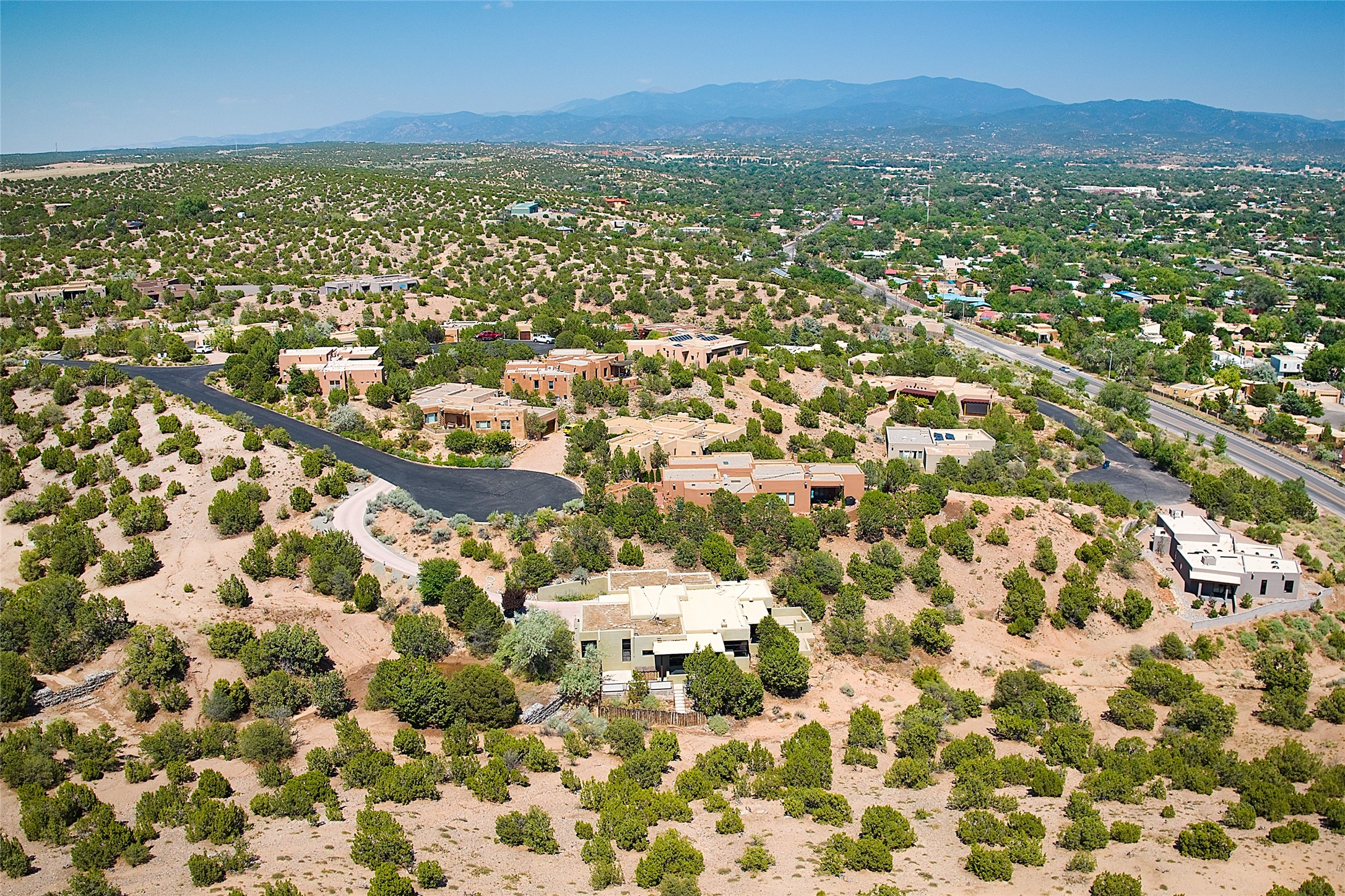 The northwest of Santa Fe within city limits includes one of the most affordable, family areas – Casa Solana. With beautiful mature trees, sidewalks and paved streets, Casa Solana has a real neighborhood atmosphere. Gonzales Elementary is within walking distance to all and the Casa Solana shopping area is a treat. The homes were built in the 1960’s by developer Allen Stamm and all include vigas, hardwood floors, fireplaces and solid construction. As you travel down West Alameda, the homes begin to spread out a bit. Horse farms dot the landscape. Newly-constructed homes appear on large open tracts. Any left hand turn takes you down to the Santa Fe River and any right hand turn delivered you into the hills above Santa Fe. Some lots in the hills offer 360 degree views, some a beautiful view of the Santa Fe city lights. Includes Zocolo and Santa Fe Estates.